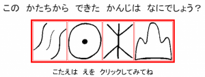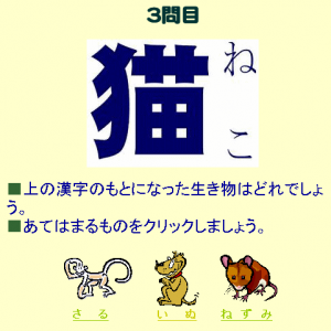 日本語母語話者向けです。漢字の成り立ちに関する問題が出され、解答を選ぶスタイルです。