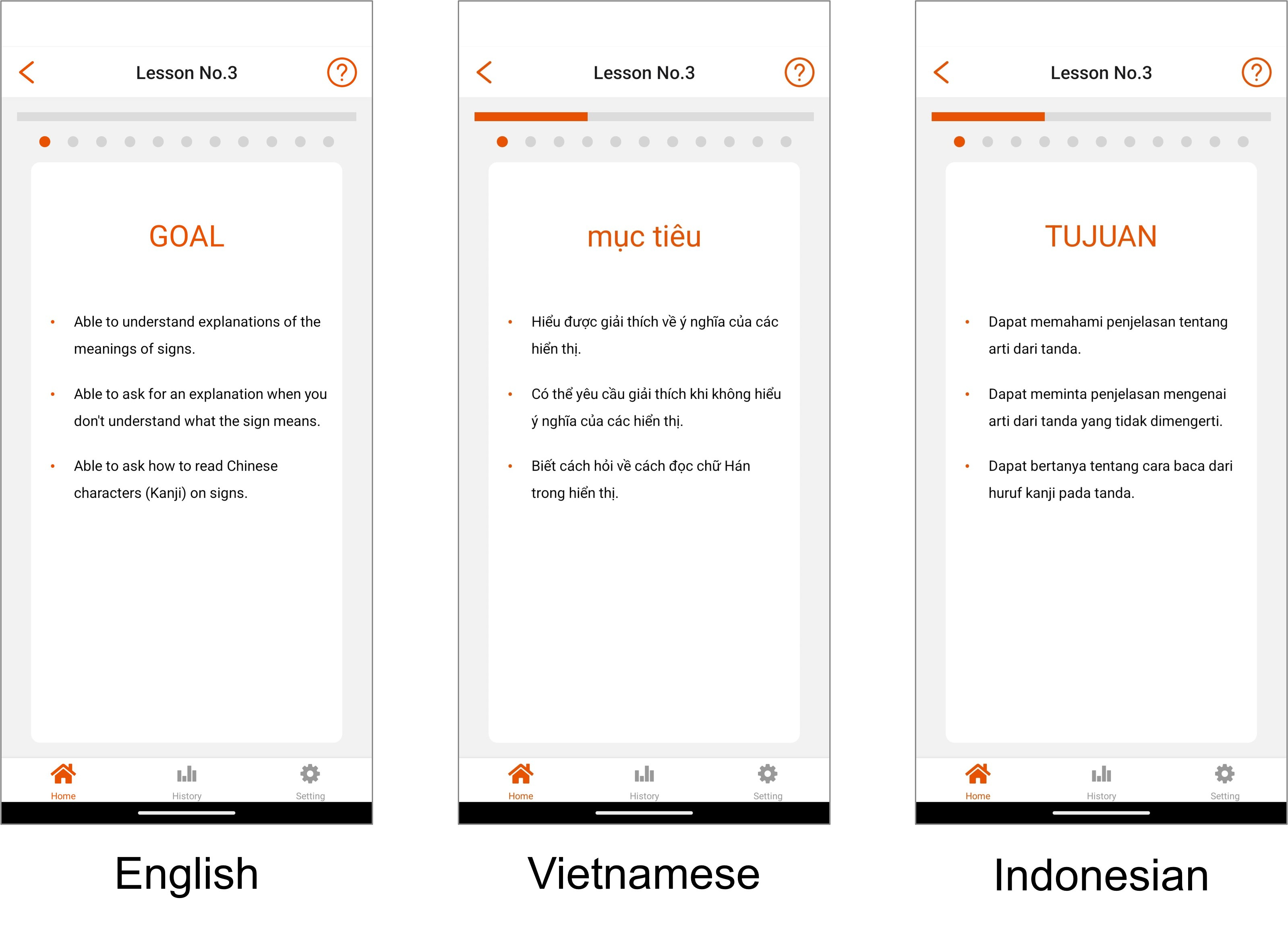 You can read the goals in the language you chose to learn Japanese in, when you signed up.