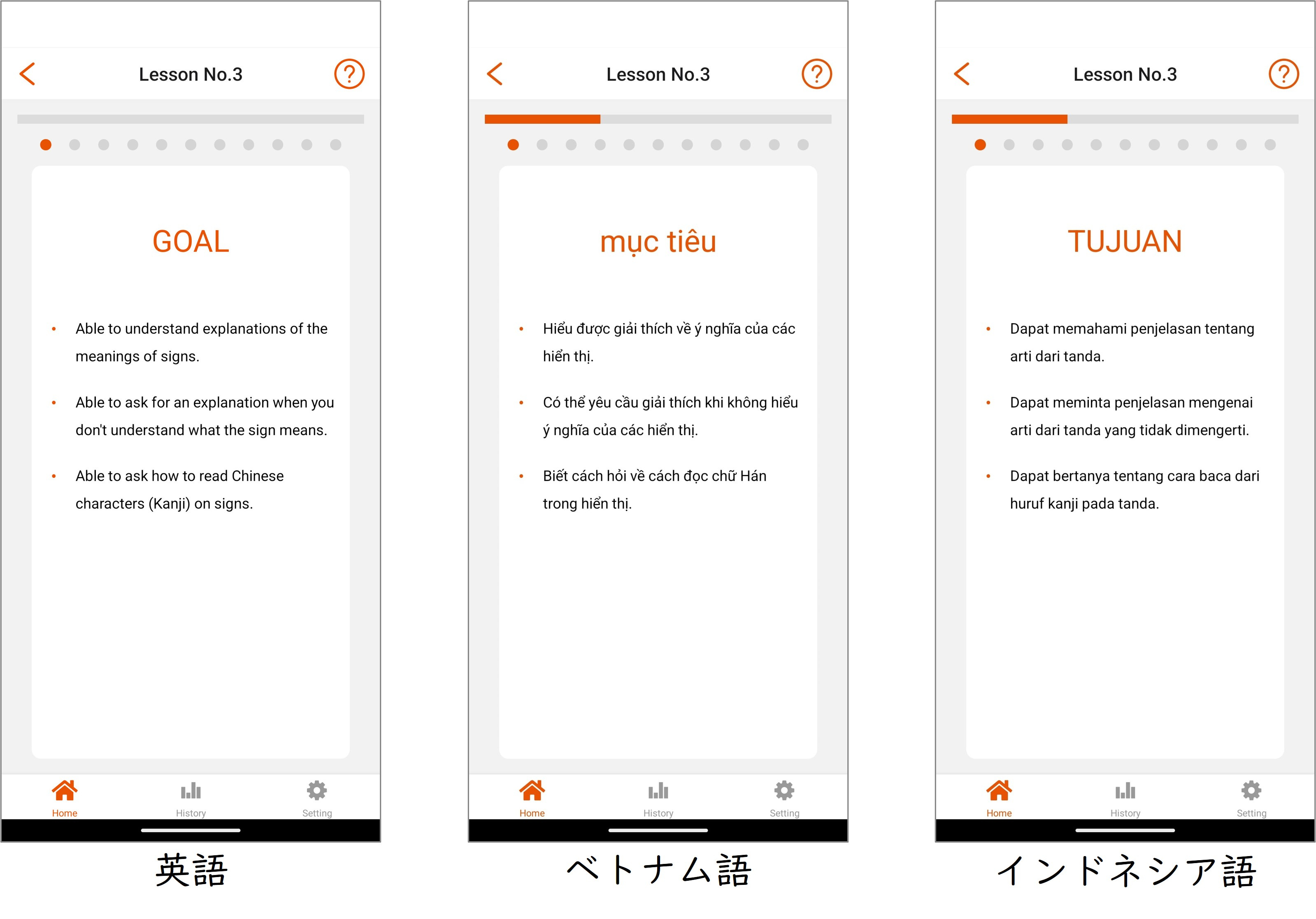 • このアプリは多言語に対応しています。(英語、中国語、ベトナム語、インドネシア語、タイ語、カンボジア語、タガログ語、ミャンマー語)