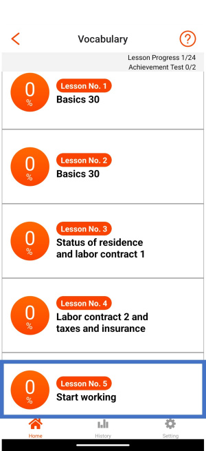 ここでは「Lesson No.5 Start working」を見てみましょう。