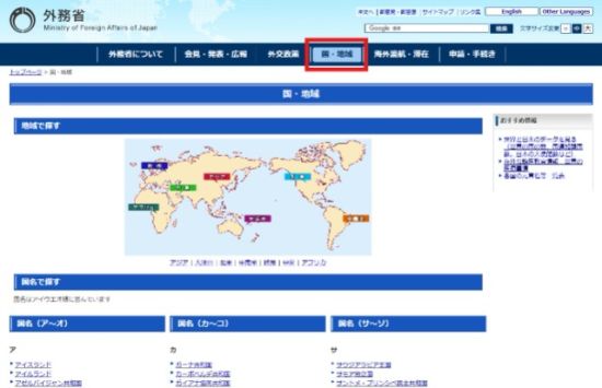 On the Japanese-language version of the site, try going to '国・地域' (Countries & Regions).