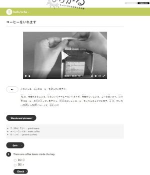 Each topic comes with a simple blog-like article. You can listen to it being read and quiz yourself on comprehension, if you like. Other contents include kanji to go with each topic that you can learn and topic-related food. As a bonus, there is Japanese language support on the English page so you can enjoy the culture while you study Japanese. You can look at it on your smartphone and it has lots of photos and videos, so even if you have a little bit of time, you can have fun.