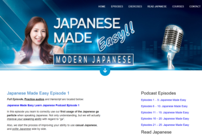On this website, you can learn beginner level Japanese grammar and basic Japanese vocabulary in English, through podcasts that come with transcripts.
