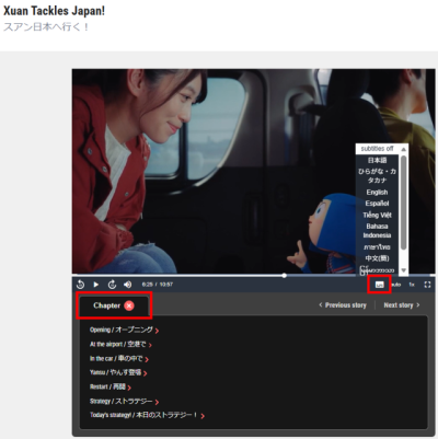 - The videos have subtitles in Japanese (With Kanji / Only Hiragana and Katakana), English, Indonesian, Spanish, Thai, Chinese (Simplified), Hindi, Vietnamese and Burmese. You can also choose to not have subtitles.