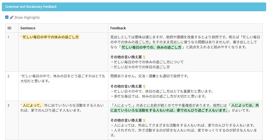 AI Diagnostics uses AI-powered feedback. Use the feedback as reference to help you improve your writing skills. You can improve your writing skills by thinking about it yourself when you rewrite.