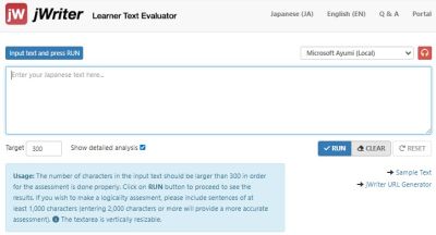 The Learner Text Evaluator jWriter is a system that automatically checks your writing. These are some things you can do here.