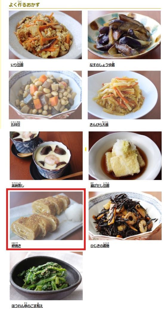 There's a good variety of food. Let's try the Tamagoyaki (Japanese rolled omelette) recipe.