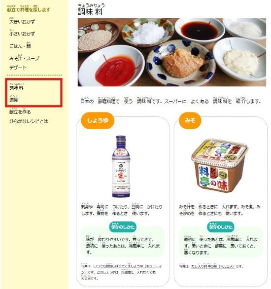 To learn about Japanese cooking in more detail, please also read the sections on 調味料 (condiments) and 道具 (cooking utensils).