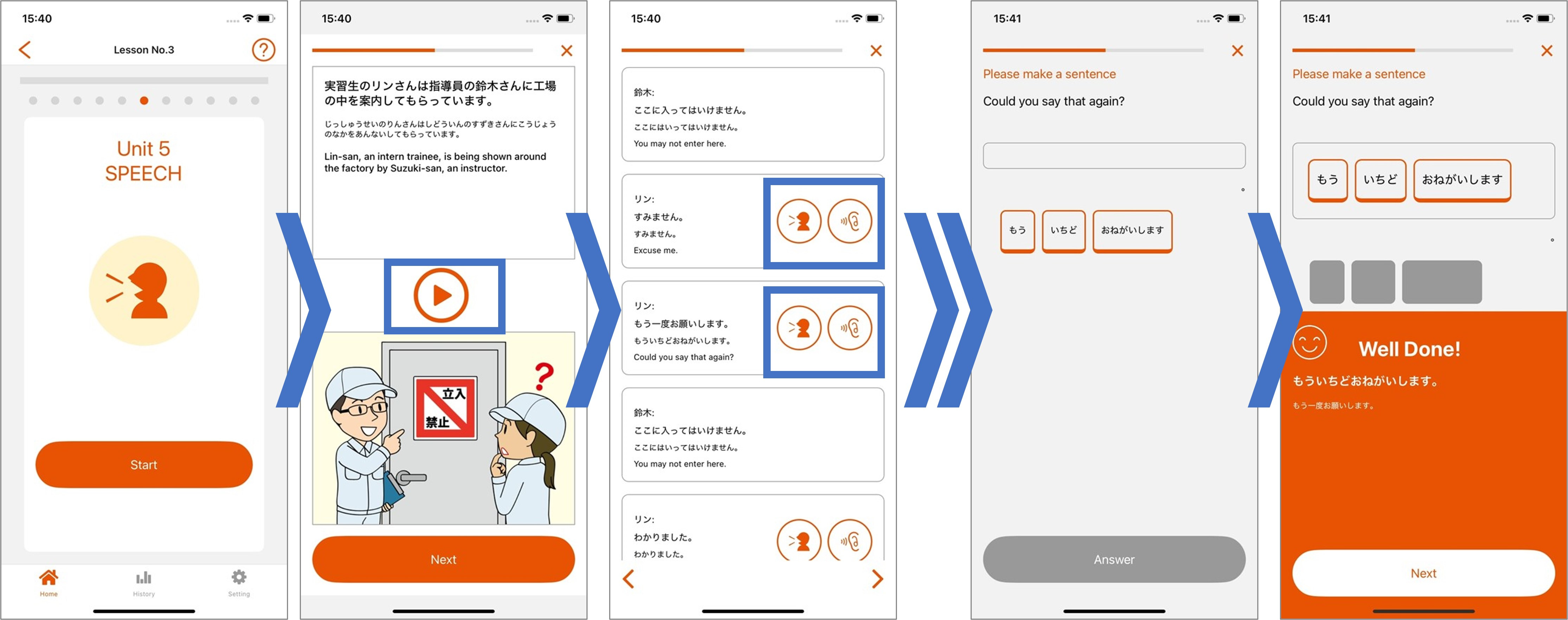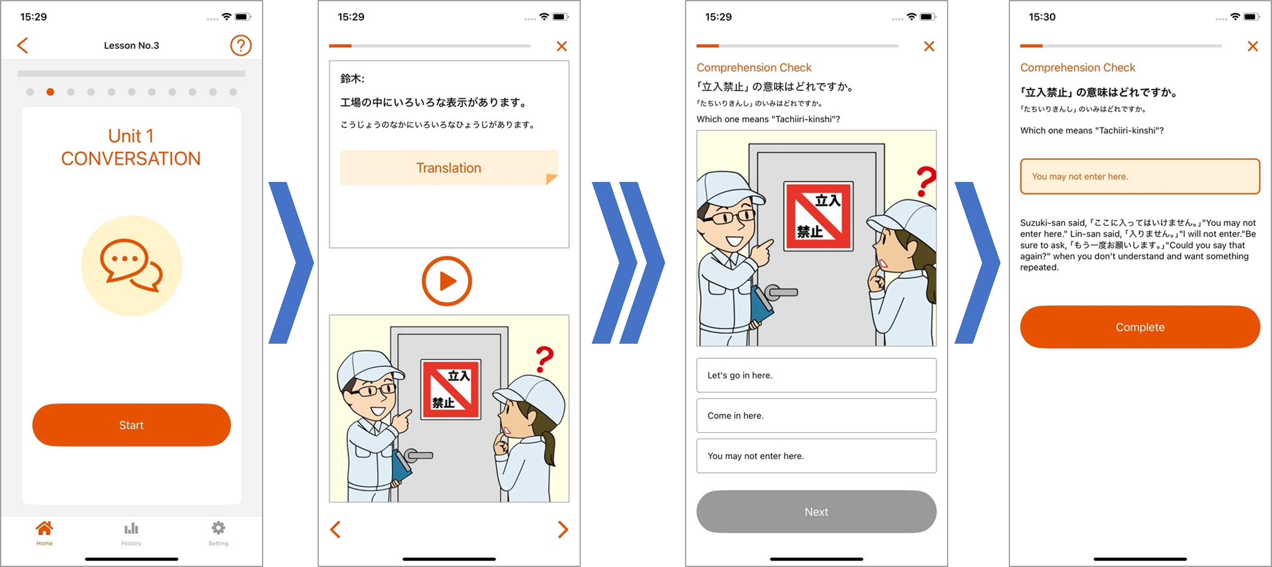 You can find learning materials with the same conversations and vocabulary as this app, on the official Organization for Technical Intern Training (OTIT) website.