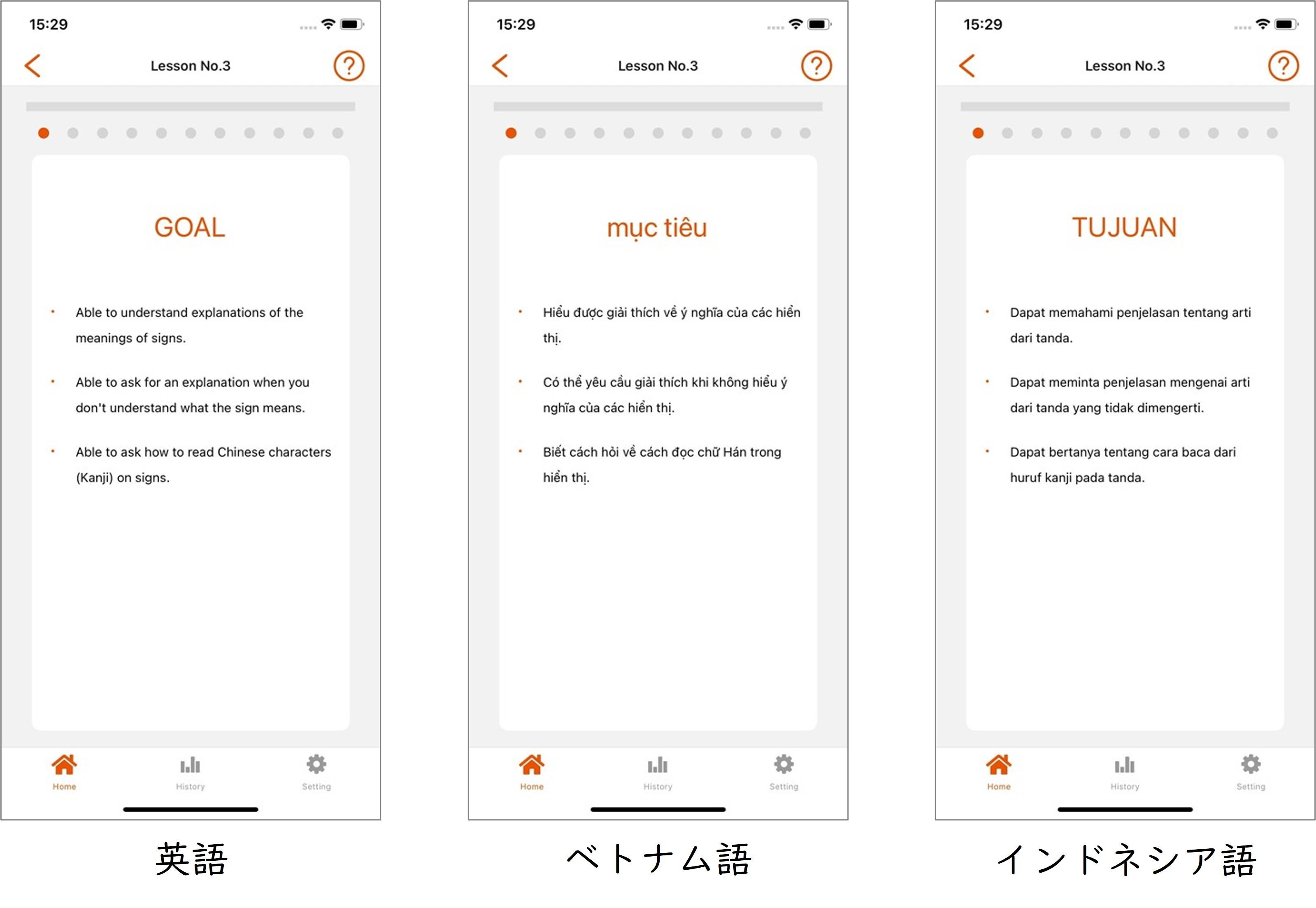 - このアプリは多言語に対応しています。(英語、中国語、ベトナム語、インドネシア語、タイ語、カンボジア語、タガログ語、ミャンマー語)