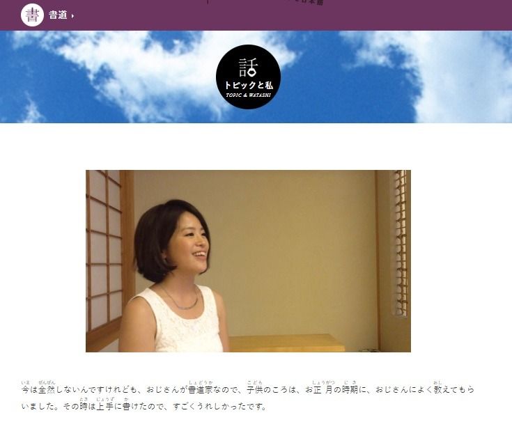次に紹介するのは、書道についての日本人の体験談が聞けるコンテンツです。