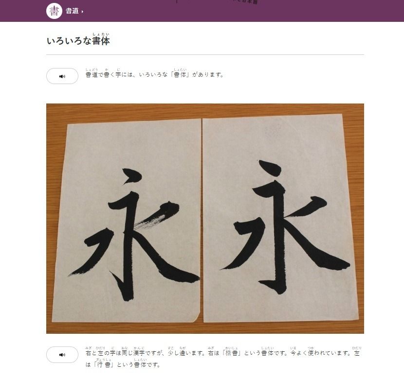 ひろがるの記事には書道についてのさまざまな記事もあるので、読解の練習にもなります。
