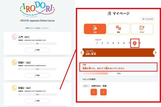 2. いろどり日本語オンラインコース 初級2(A2)トピック8 16課
