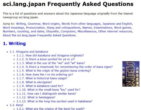 Sci.lang.japan Frequently Asked Questions(紹介記事)