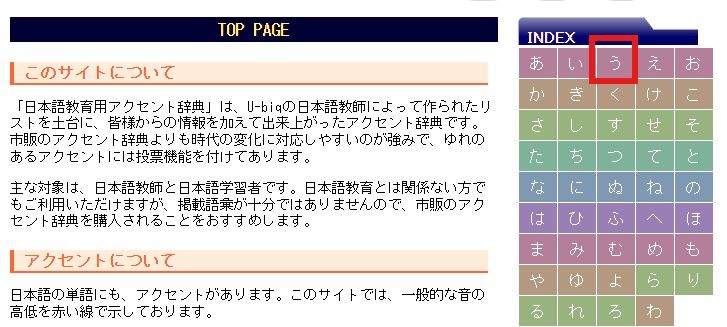 日本語のアクセントについてよく知らない学習者の方はここで一度理解してから、次に紹介するサイトを参考にしてください。