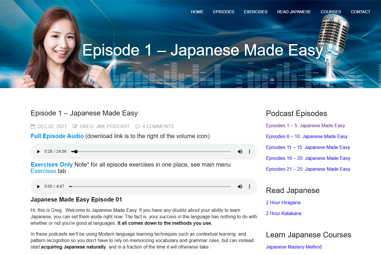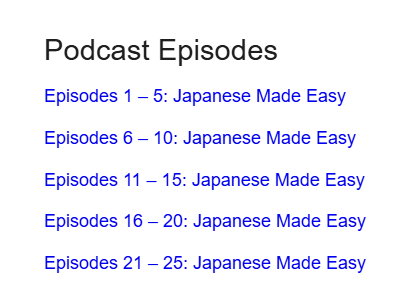 スクリプト付きでポッドキャストで日本語の初級文法や基本の語彙について英語で学べるサイトです。