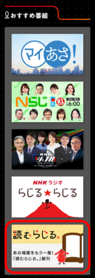 画面右にはそのほかのラジオ番組のメニューがあります。