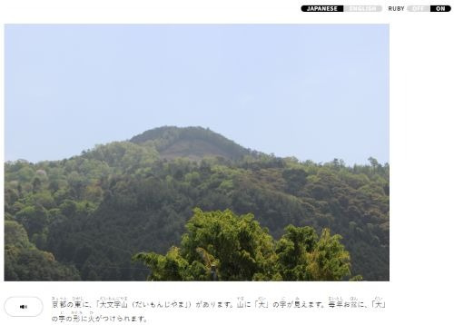 日本語ページ・英語ページ、ルビあり・なしをえらぶことができます。