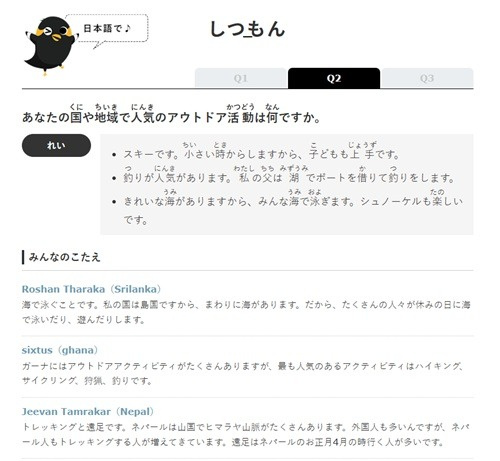 - トピックについて、いろいろな日本人の考え方を知ることができます。