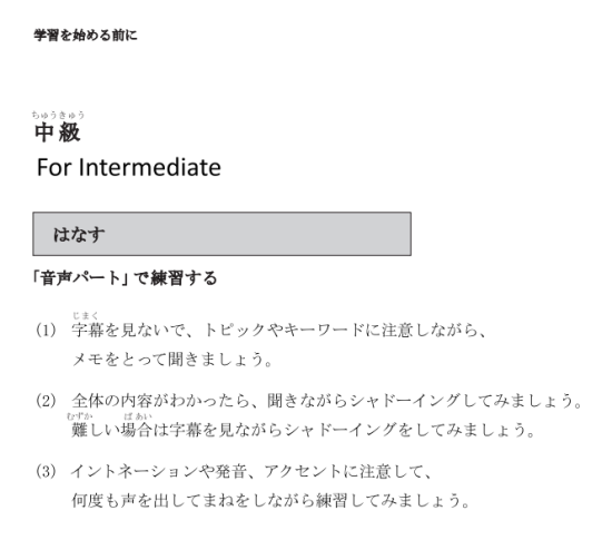 - 中級はビデオとオーディオ、中上級はオーディオのコンテンツがあります。